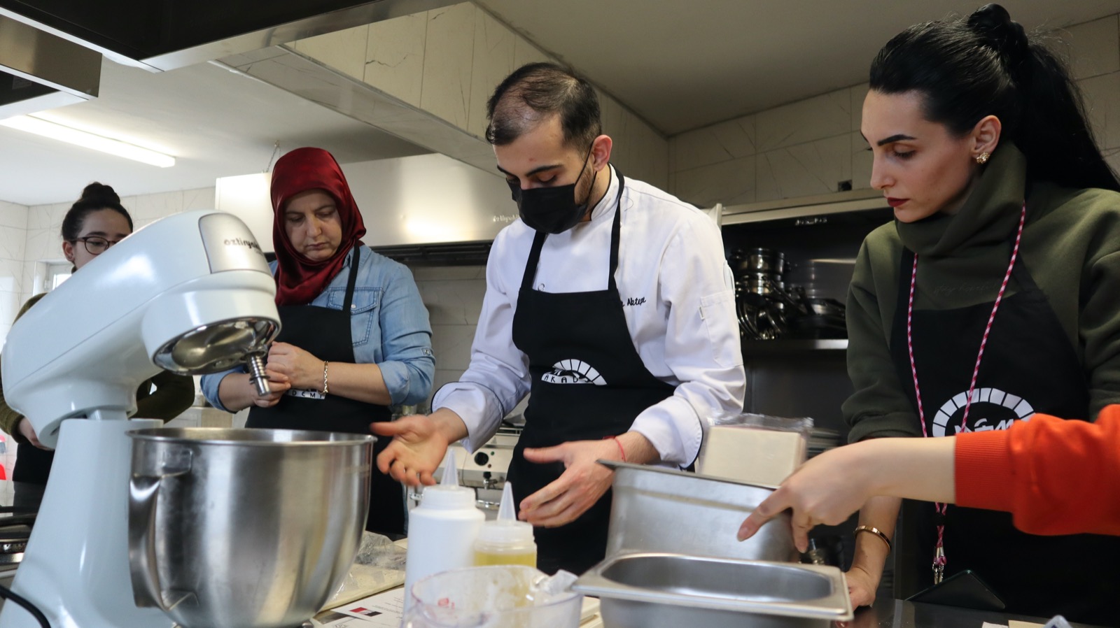 Düzce MSM Akademinin son konuğu ise Gastronomi Uzmanı Berker Aktepe oldu. Genç yaşına rağmen özellikle uluslararası mutfak sanatlarında kendini geliştiren Berker Aktepe, kursiyerleriyle Fransız mutfağının lezzetli tatlılarından Vol-au-Vent tatlısı ve İtalyanların dünyaca ünlü Ravioli yemeğini yaptı. Yemeklerin bütün püf noktalarını anlatan Gastronomi Uzmanı Aktepe, mutfak ve sunum konusunda da önemli bilgileri paylaştı. Kursiyerler yemek yapmanın yanı sıra tabaklamayı da öğrendi.