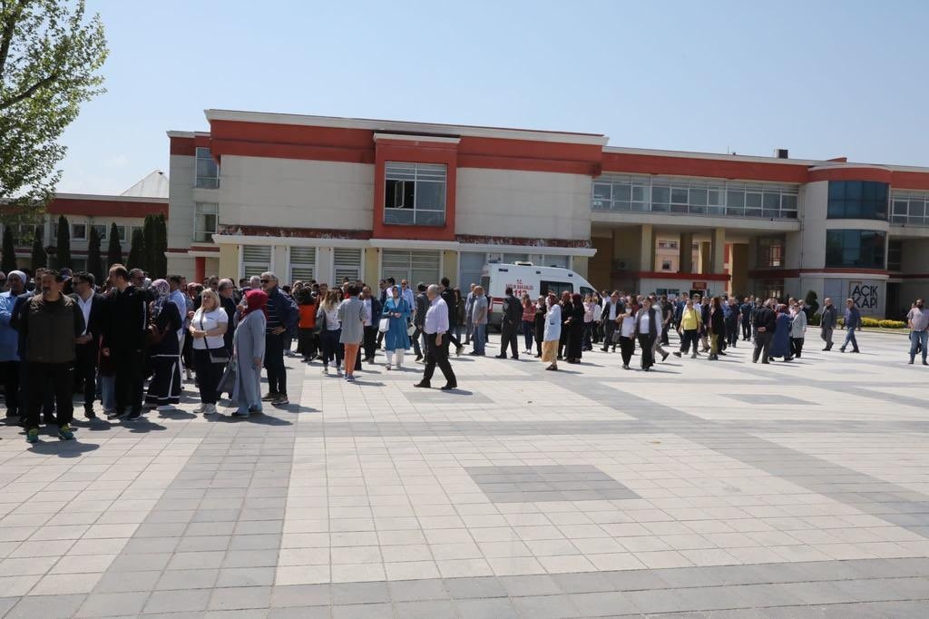 Düzce Valiliği’nde, deprem, yangın gibi afetlere hazırlıklı olunması, tahliye ve toplanma alanlarının pekiştirilmesi amacıyla sirenler eşliğinde deprem tatbikatı gerçekleştirildi.