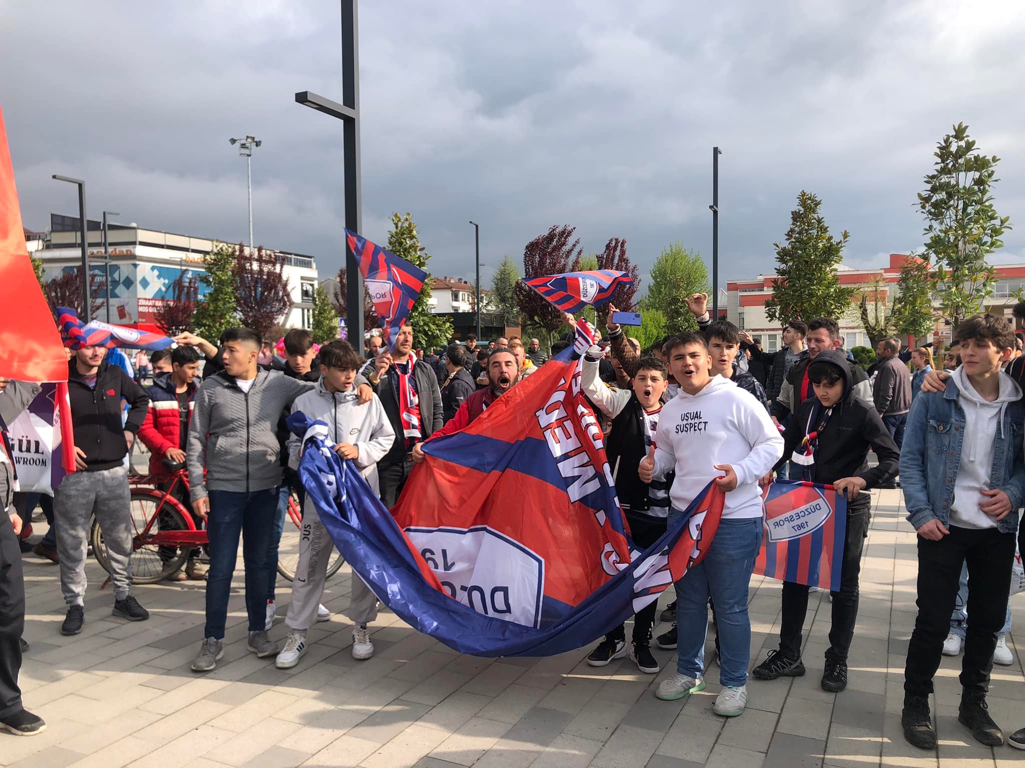 Düzce’de şehir adeta kırmızı laciverte büründü.Yüzlerce taraftar maçın bitiminin hemen ardından bayrak ve flamlarla İstanbul Caddesi’ne akın ederek şampiyonluk için sevinç gösterilerinde bulundu.