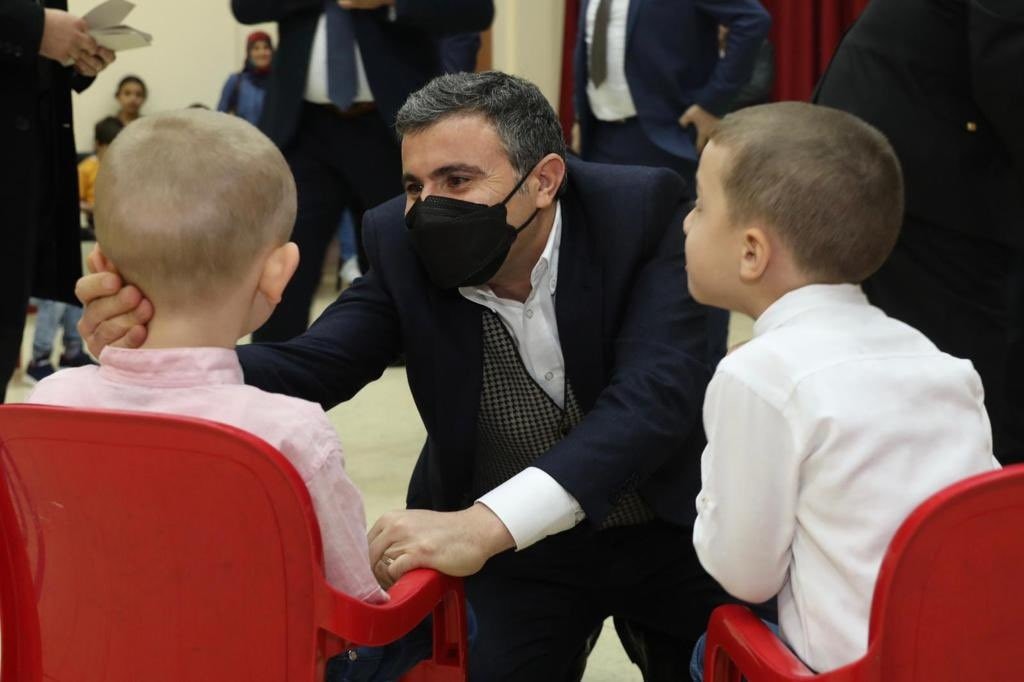 Vali Atay, çocuklarla yakından ilgilenirken onlara hediye vermeyi de ihmal etmedi.