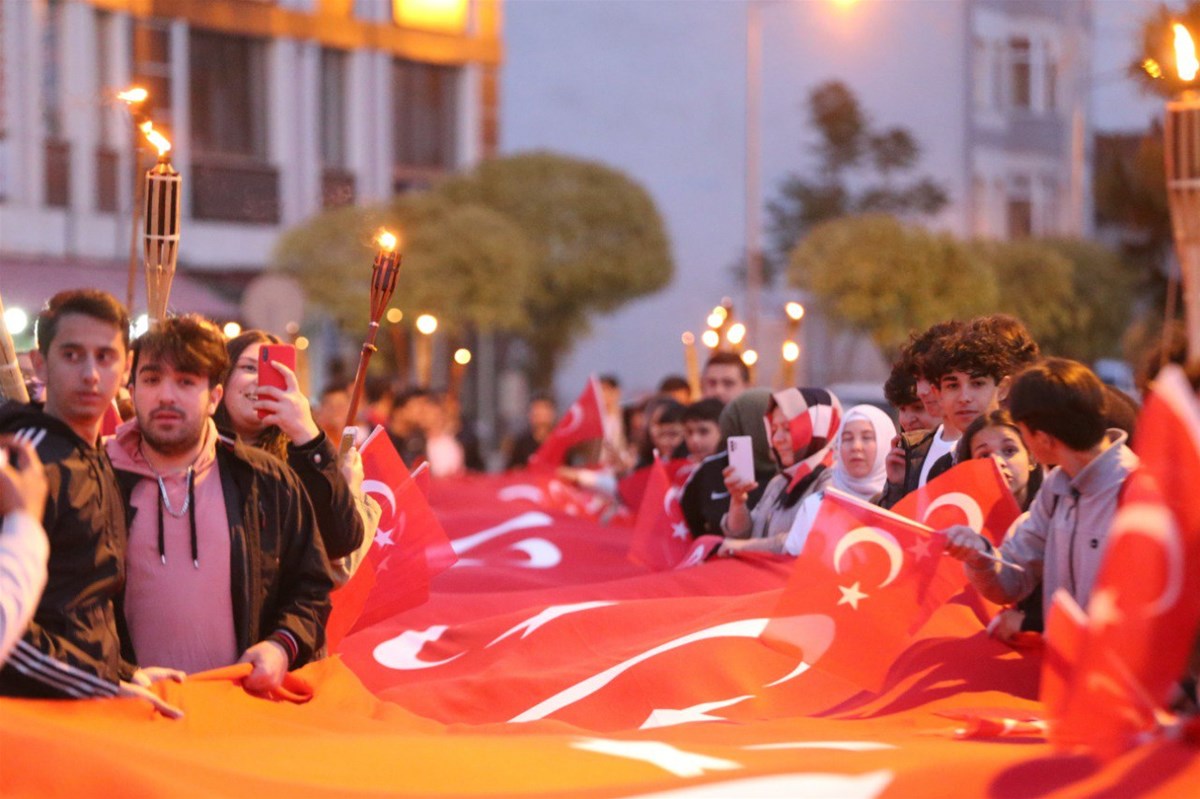 15-21 Mayıs Gençlik Haftası etkinlikleri kapsamında Atatürk’ün Samsun’a çıkışının 103. yıldönümü kutlamaları Düzce’de akşam saatlerinde de devam etti. Gençlik ve Spor İl Müdürlüğünün düzenlediği, Düzce Belediyesi önünden başlayan ve yaklaşık bin kişinin katıldığı fener alayında vatandaşlar, gençler ve sporcular ellerinde taşıdıkları meşalelerle Düzce Belediyesi Bando Takımı ile Mehteran Takımına eşlik ederek Anıtpark Meydanı’na kadar yürüdü.