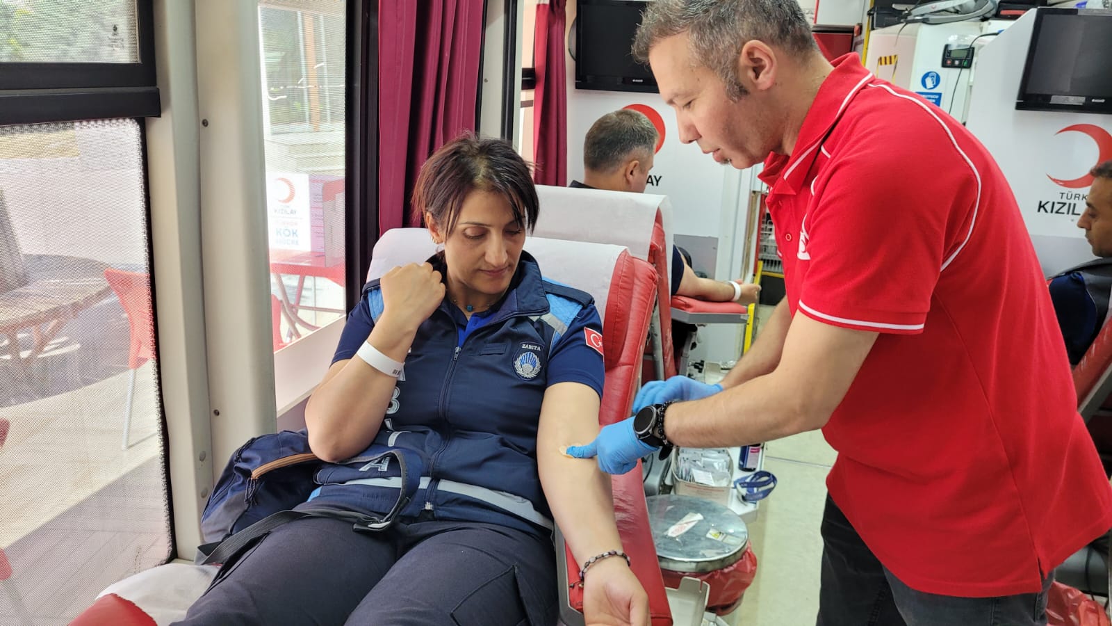 Düzce Belediyesi Zabıta Müdürlüğü personeli kan bağışlayarak kan ihtiyacının karşılanması hususunda destek oldu.