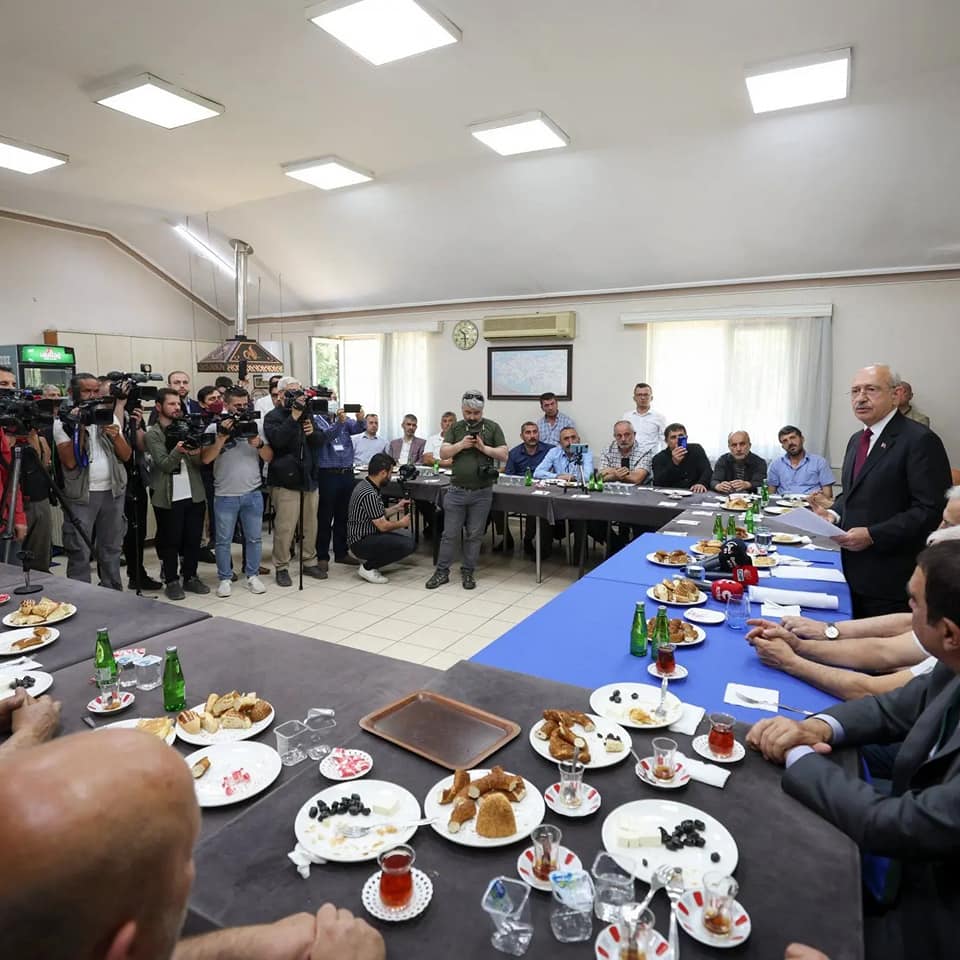 CHP Genel Başkanı Kemal Kılıçdaroğlu, yurttaşların sorunlarını dinlemek için Düzce’ye geldi. Kılıçdaroğlu’nun ilk adresi Düzce Taşımacılık Kooperatifi oldu. Kılıçdaroğlu burada şoförlerle kahvaltı yaptı ve sorunlarını dinledi. Bir şoför araç fiyatlarının çok yükseldiğini dile getirerek, “İkinci el çok yükseliyor, bununla başa çıkamıyoruz. Araç parçalarımız aşırı yükseliyor, bununla başa çıkamıyoruz. Sektörde gerçekten çok yıpranıyoruz. Türkiye’nin komple yükünü taşıyan, ilaç, tarım, sanayi olsun taşıyan kişileriz. Ama istiyoruz ki bizim önümüz açılsın. Daha bir rahat nefes alalım” dedi.