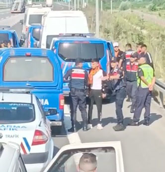 Otoyolda karşı karşıya gelen taraftarlar arasında kavga çıktı. Tekme tokat taşlarla birbirine giren taraftarlar ortalığı savaş alanına çevirdi.