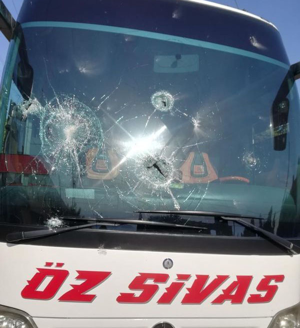 Taraftar otobüslerinin camları atılan taşlarla kırıldı. Olayların büyümemesi için İçişleri Bakanlığı’nın talimatıyla güvenlik tedbirleri artırıldı. Bölgeye çok sayıda jandarma ve polis ekibi gönderildi. Otobüsler polis eşliğinde yolculuğunu devam ederken, gerginlik çıkardığı belirlenen bazı taraftarlar jandarma ekipleri tarafından gözaltına alındı. Yaşananlar otobüsteki taraftarlar tarafından cep telefonu kamerası ile görüntülendi.