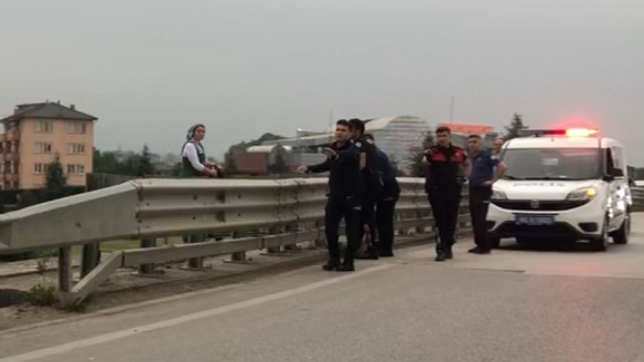 Düzce’de iddiaya göre sevgilisiyle tartıştıktan sonra intihar etmek amacıyla köprüye çıkan genç kadın, polis ekiplerinin çevikliği sayesinde bir anlık dalgınlığından yararlanılarak köprüden indirildi.