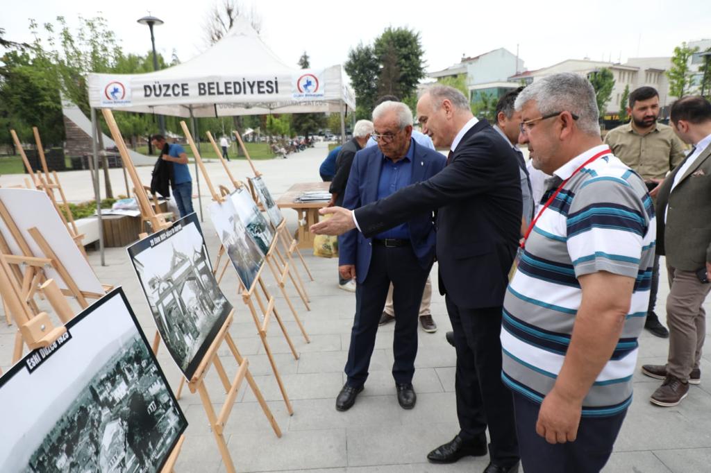 Eski Düzce Fotoğrafları arşivinin sahibi Nuri Çetin ise fotoğraf sergilerinin daha önce de yapıldığını ancak bir boşluk yaşandığını ve eskiye özlem duyulduğunu belirterek, sergiyi açmaya karar verdiklerini söyledi. İstanbul ve Marmara Üniversitelerinden ve tarihe tanıklık eden insanlardan faydalanarak 4 bin 700 karelik dijital arşivi olduğunu kaydeden Çetin, “Millet Bahçesinde 100 kadar fotoğrafı sergiliyoruz. Sergimize gelen insanlar çok ilgili. Gençler fotoğrafları merak ederek bize soru soruyor. Yaşlılar bildikleri için farklı düşünüyor, gençler ise göremedikleri için daha meraklı oluyorlar. Ben de bundan keyif alıyorum.  Başkan Faruk Bey’e eskiye yönelik Saat Kulesi, Zincirli Kuyu gibi binalarımızın yapılmasını ilettim. Daha önemli yapılar tamamlandıktan sonra bunları da yapacağına inanıyorum” şeklinde konuştu.