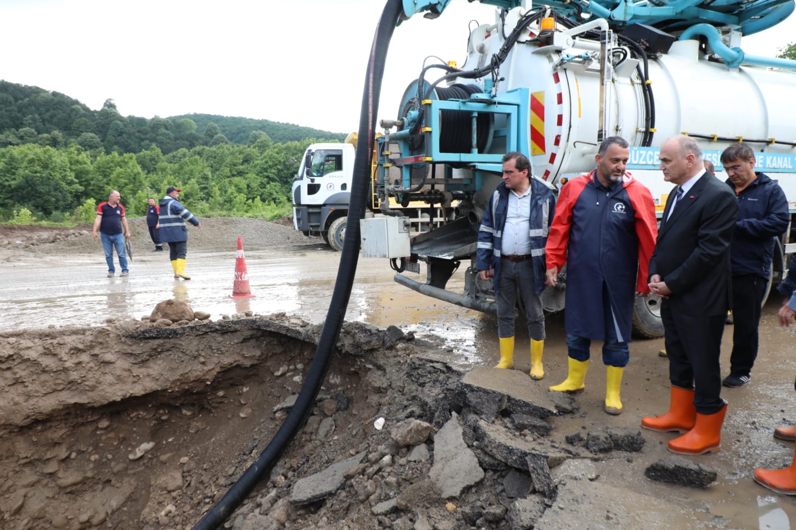 İller Bankası Başkanımız Genel müdürümüz, iller bankasının genel müdür yardımcısı ve bölge müdürü de buradalar bize destek veriyorlar. Dün de Çevre ve Şehircilik Bakanımız aradı. Bizlere bir miktar maddi destek sağlıyorlar. Düzcelilerin bir kaç saate ihtiyacı var. Düzceli kardeşlerimizin musluklarından inşallah bu akşam sular akmaya başlayacak. 24 Saatte, bir kaç ayda yapılabilecek işi hallettik” şeklinde konuştu.