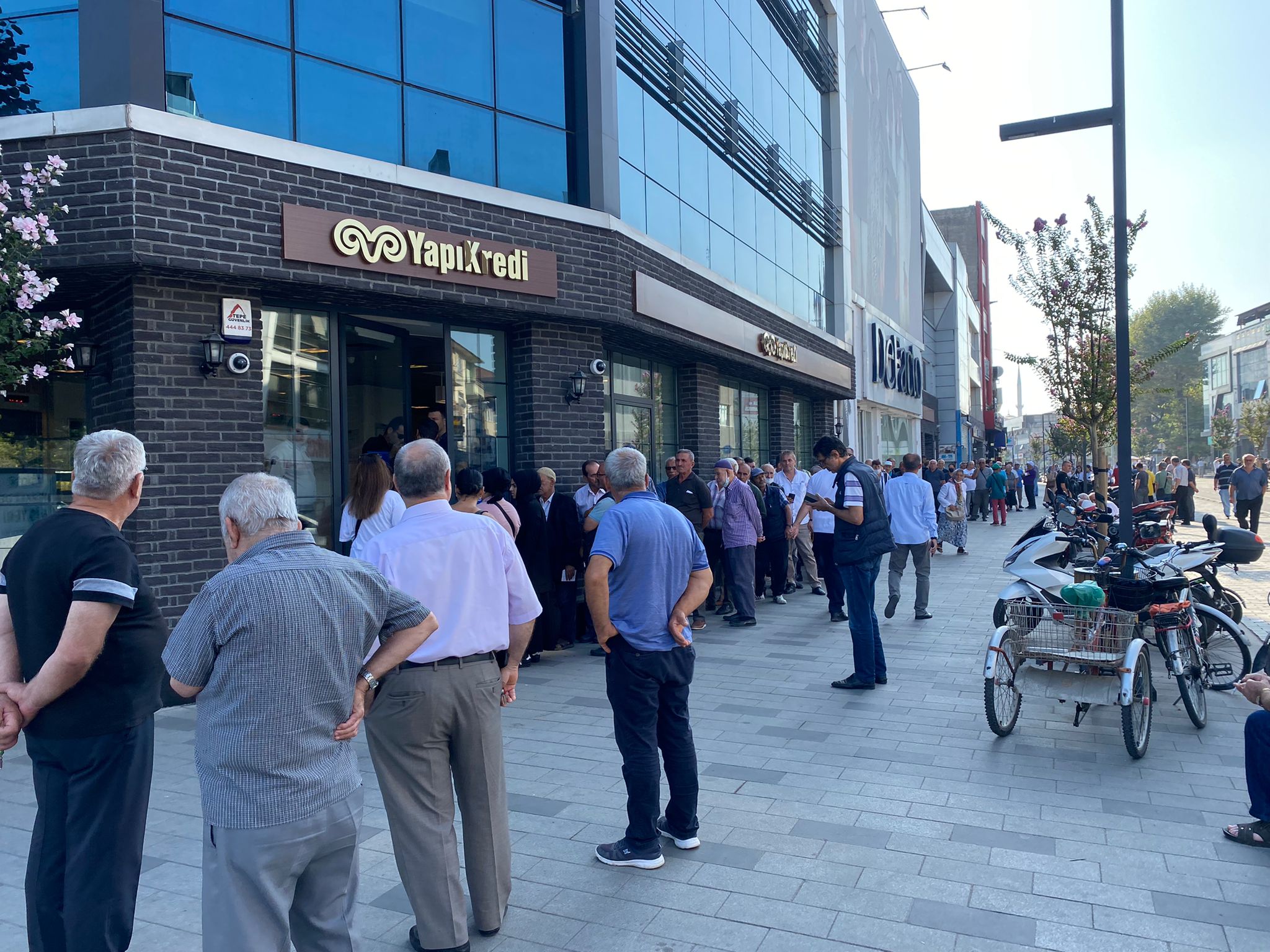 Düzce’de son 1 haftadır banka önlerinde oluşan uzun kuyrukların kamu ve özel bankaların promosyonda çıtayı yükseltmesinden kaynaklandığı ortaya çıktı. Banka promosyonlarını kampanyalarından yararlanmak isteyen emekli vatandaşlar, banka şubeleri önünde uzun kuyruklar oluşturmaya devam ediyor. Bankaların hazırladığı promosyonlardan yararlanarak ek gelir elde etmek isteyen emekliler, sabanın erken saatlerinde İstanbul Caddesi üzerinde bulunan banka şubelerinin yolunu tuttu. Vatandaşlar banka önlerinde sıcak havaya rağmen, 1 ile 3 saati bulan bekleme sürelerinde kuyrukta durdu.