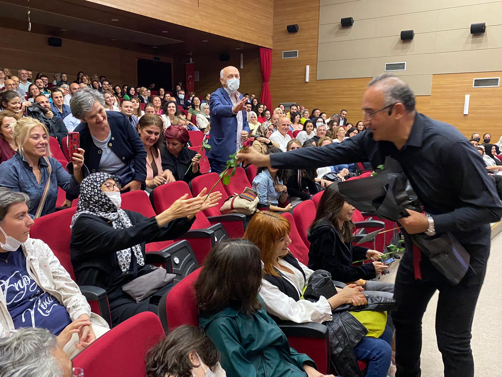 Keyifli ve hoş sohbetiyle Sunay Akın Düzcelilere bir kez daha kendisini hayran bıraktı. Usta Sanatçının yeni oyunu Sunay Akın ile Yüz Yüze, kültürümüzün unutulmaya yüz tutan değerlerini çok geniş bir yelpazede ele alıyor! Sanatçının yeni oyununu Düzceli sanatseverler büyük bir ilgi ve beğeni ile izledi.