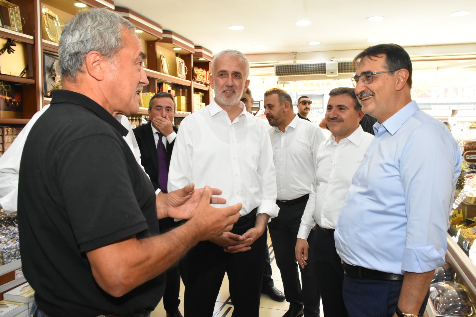 Namaz sonrası vatandaşlarla sohbet eden Dönmez, İstanbul Caddesi’nde esnaf ziyaretlerine devam etti.