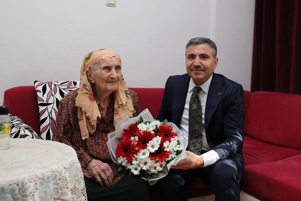 Düzce Valisi Cevdet Atay, 1 Ekim Dünya Yaşlılar Gününde 101 yaşındaki Saniye İşler’i evinde ziyaret etti elini öptü, hayır duasını aldı.