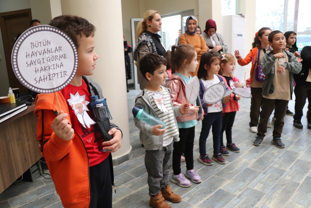Düzce Belediyesi Hayvan Konukevinin ziyaretçileri bununla da sınırlı kalmadı. 23 Nisan İlkokulu ana sınıfı öğrencileri, konukevine geldiklerinde heyecanlarını gizleyemezken, yanlarında getirdikleri mamaları can dostlara vermek için birbirleri ile yarıştılar.