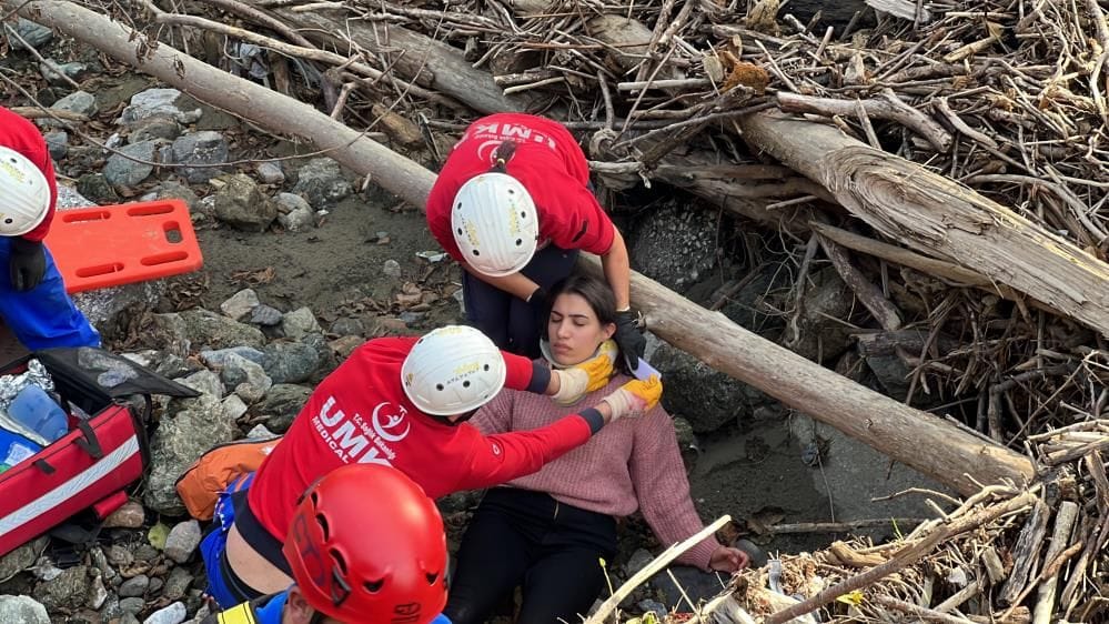 Düzce’de düzenlenen tatbikatta senaryo gereği orman işçilerini taşıyan traktör heyelan sonucu dereye uçtu. Gerçeğini aratmayan görüntülerin yaşandığı tatbikatta, 16 yaralı ekiplerin yoğun çalışması ile kurtarıldı.
