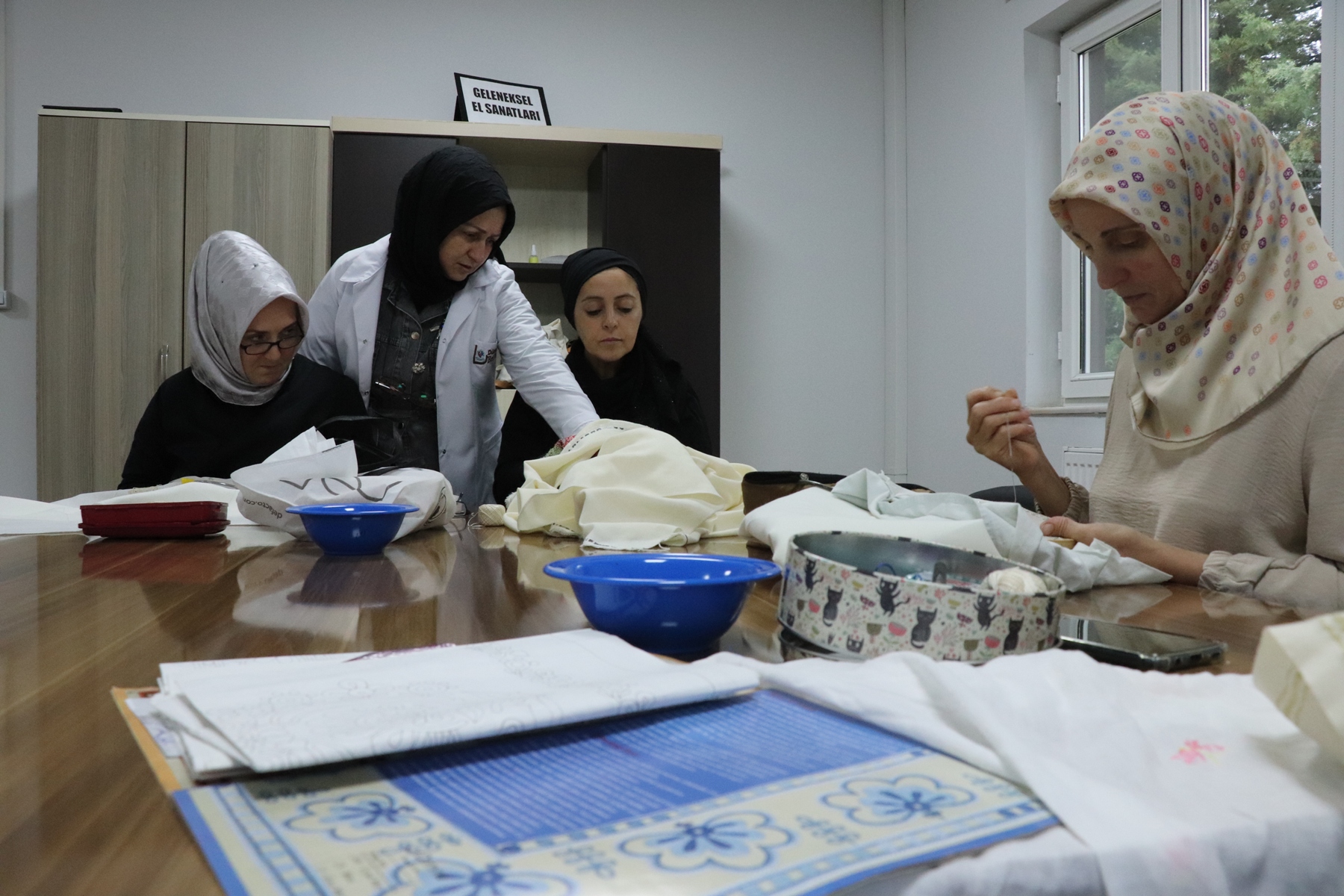 Düzce Belediyesi Meslek Edindirme Kurslarının en çok tercih edilen ve gedikli kurslarından biri olan Geleneksel El Nakışları, ev kadınlarının hayatlarını renklendirirken bir yandan da ek bütçe elde etmelerini sağlıyor.