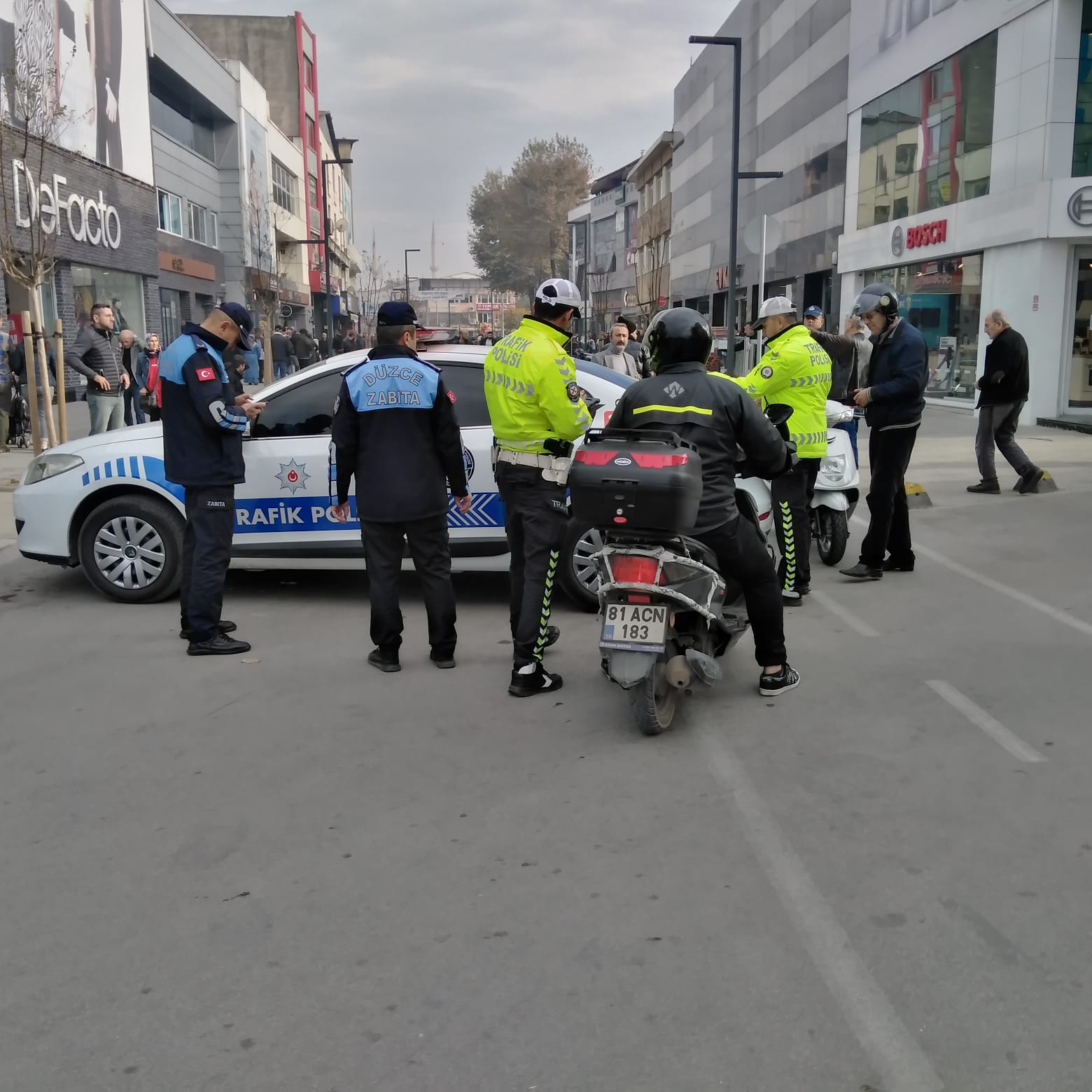 Düzce Belediyesi Zabıta Müdürlüğü, Düzce İl Emniyet Müdürlüğü Trafik Şube Müdürlüğüne bağlı ekiplerle birlikte yaya trafiğine açık olan İstanbul Caddesi üzerinde de motorlu taşıtlara yönelik denetimlerini de aralıksız sürdürüyor.