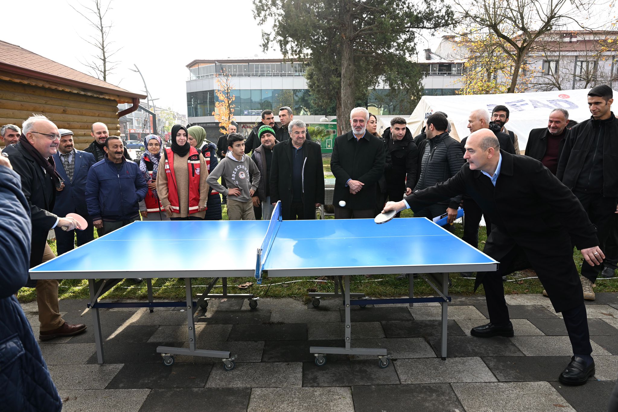 Bakan Soylu daha sonra İlçe merkezinde mülki amirlerin de katılımıyla durum değerlendirmesi yaptı. Bakan Soylu Depremin yaralarının hızla sarıldığını ve ekiplerin bu  noktada aralıksız çalıştığını belirtti.  Hayatın normale dönmeye başladığı ilçede Bakan Soylu Belediye Başkanı Yakup Demircan ile masa tenisi oynadı. Masa tenisi maçını vatandaşlar da ilgi ile izledi.