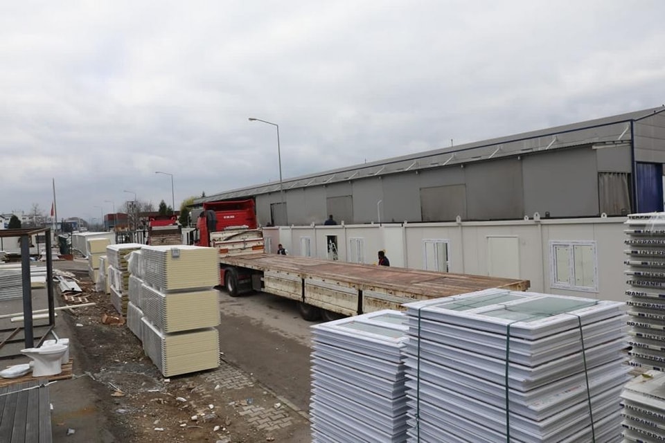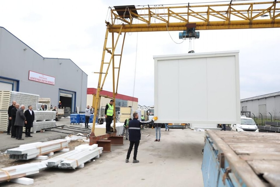 Valilik öncülüğünde STK’lerin de desteğiyle kurulan merkezlerde, yaklaşık 400 çalışanın yoğun mesaisiyle günlük ortalama 75 konteyner yapılıyor. Banyosu ve mutfağı bulunan 35 metrekarelik yapıların günlük üretiminin 100’e çıkarılması hedefleniyor.