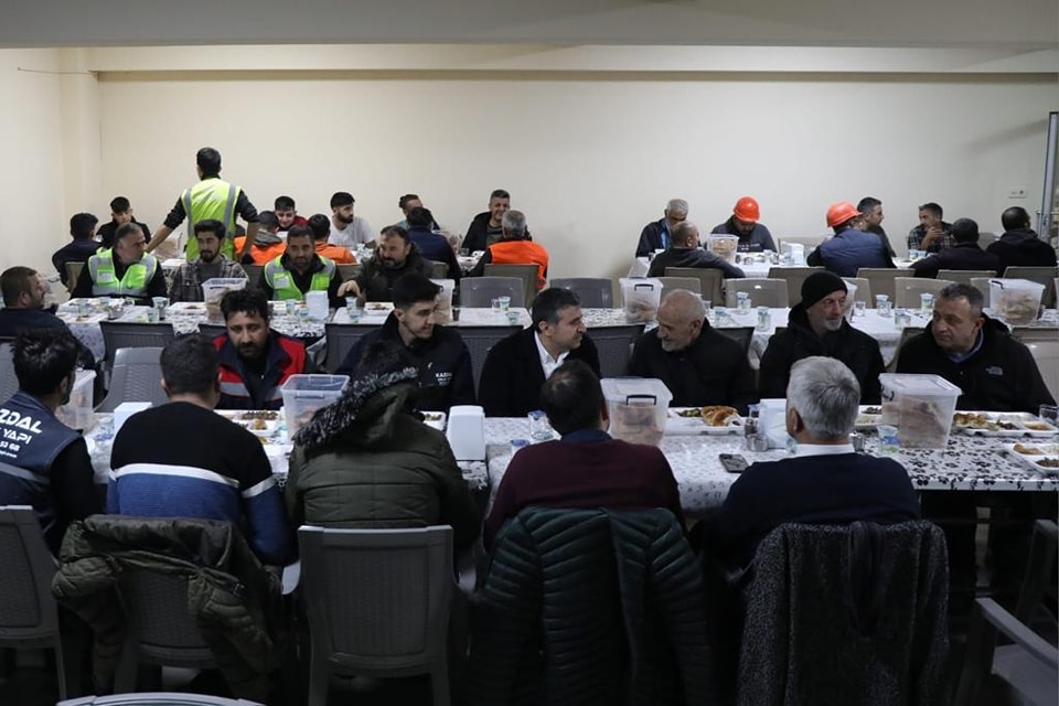 Vali Cevdet Atay, İl Genel Sekreteri Mehmet Hayri Şen ile birlikte ilk iftarını çalışan depremzedeler için yuva yapan işçilerle birlikte yaptı.
