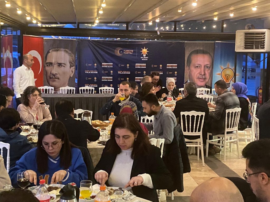 Akşam ezanının okunması ile birlikte oruçlar açıldı, ardından il başkanı Hasan Şengüloğlu seçim çalışmaları hakkında bilgiler verdi. Türkiye’nin en genç ilinde 34.3’lük yaş ortalaması ile en genç teşkilata sahip olduklarını belirten Şengüloğlu; seçim çalışmaları kapsamında Düzce’nin tüm mahalle ve köylerini karış karış gezdiklerini ve çalmadık kapı bırakmadıklarını söyledi. Çok daha güçlü bir şekilde iktidara geleceklerini belirten Şengüloğlu, Düzce’de de seçimden zaferle çıkacaklarını söyledi.