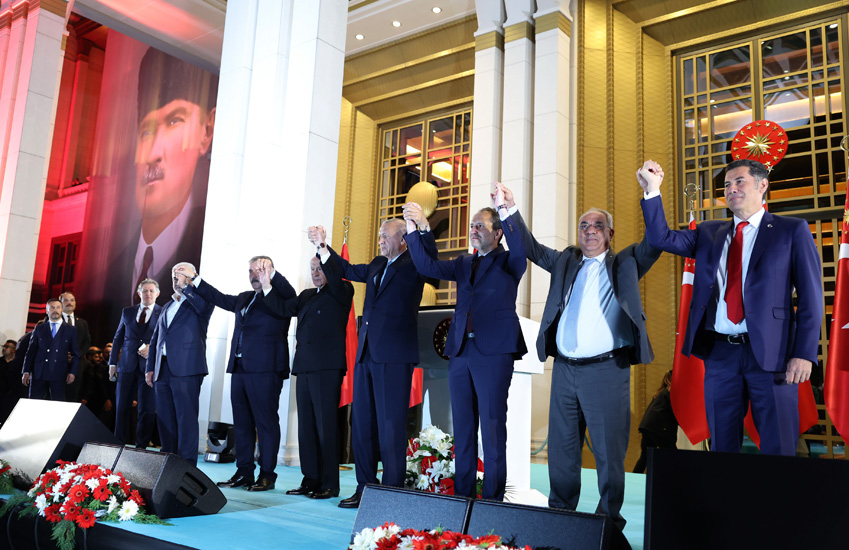 Bugün, rahmetli Menderes’in uğruna canını verdiği demokrasi ve kalkınma hamlelerimizin en üst seviyeye ulaşma günüdür. Bugün, rahmetli Özal’ın son nefesine kadar hep peşinde koştuğu büyük Türkiye hayalinin gerçeğe dönüşme sürecinin başlama günüdür. Bugün, rahmetli Erbakan’dan rahmetli Türkeş’e davalarına aşkla bağlı milletin tüm adamlarının mücadelelerinin gayesine ulaşma günüdür. Bugün, bizim 21 yıldır ülkemize kazandırdığımız eserlerin, milletimize yaptığımız hizmetlerin üzerine Türkiye Yüzyılı’nın müjdesini verme günüdür. İşte bunu sizlerle yapıyoruz, sizlerle yaptık.”
