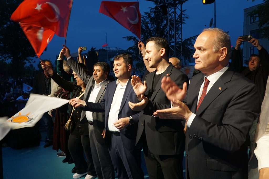 Uzun araç konvoyları yapan vatandaşlar, Anıtpark Meydanında buluştu. Binlerce kişinin toplandığı alanda kalabalığın coşkusuna AK Parti Düzce Milletvekilleri Ayşe Keşir, Ercan Öztürk, Düzce Belediye Başkanı Dr. Faruk Özlü, İlçe ve belde belediye başkanları, AK Parti Yöneticileri ve Cumhur ittifakı ortağı siyasi partilerin temsilcileri de ortak oldu.