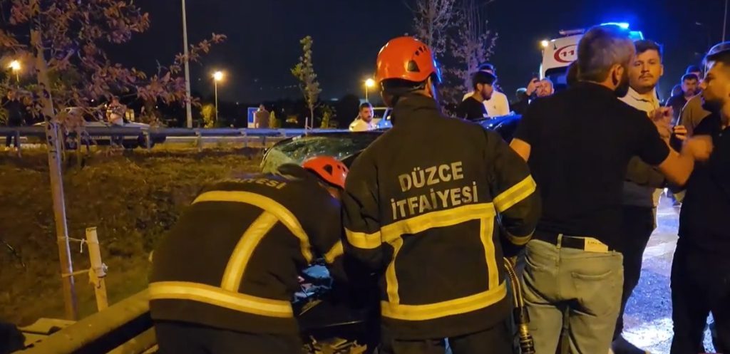 Kaza 23.40 sıralarında Çamköy Mahallesi köprülü kavşağı üzerinde meydana geldi. Çamköy mahallesindeki yeni açılan bağlantı yolu üzerinde Yusuf Yıldırım idaresindeki 81 ADA 107 plakalı otomobil karşı yönden gelen Selçuk Pektaş idaresindeki 06 COA 368 plakalı hafif ticari araçla çarpıştı. Kazada otomobil sürücüsü Yusuf Yıldırım ile yanında bulunan Mustafa Yıldırım ve hafif ticari araç içerisinde bulunan sürücü Selçuk Pektaş ve Serdar Efe Bilgin, Sercan Çınar, Efe Avağ, Ayşen Kocalı, Fatmanur Ahsen Kocalı, Tuncay Bilgin, Ali Ay Güneş ve Murat Pektaş yaralandılar. Yine hafif ticari araç içinde bulunan ve çarpışma sonrası arabadan fırlayarak yola düşen 3 çocuk annesi Hanım Bilgin (30) olay yerinde Nazlıcan Barotçu (21) ise hastanede hayatını kaybetti. Yaralılar sağlık ekiplerinin müdahalesinin ardından Düzce Üniversitesi ve Atatürk Devlet Hastanesi acil servisine kaldırılarak tedavi altına alındılar. Kazayla ilgili olarak soruşturma başlatılırken, hafif ticari araç içerisinde bulunanların düğünden döndüğü öğrenildi.