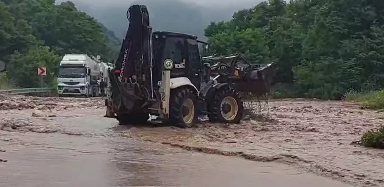 Sağanak yağışın etkili olduğu Yığılca’da birçok yol heyelan nedeni ile kapandı, dereler taştı, ilçedeki su şebekesi zarar gördü, vatandaşlar yağmurlu havada susuz kaldılar.