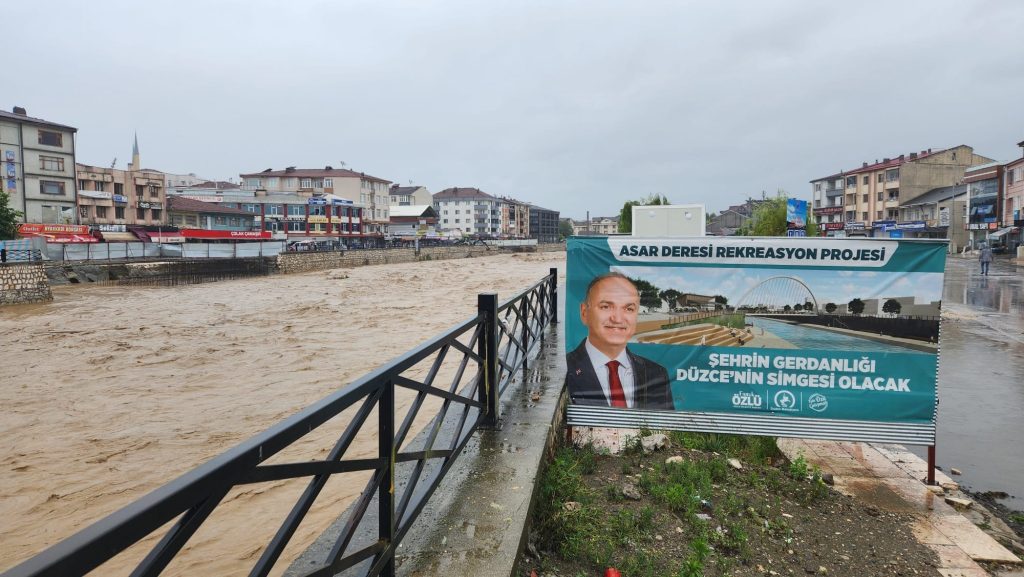 Düzce’de etkili olan sağanak yağış nedeniyle şehir merkezinden geçen Asar Deresi’nde su seviyesi yükseldi. Suyun yükselmesi ile birlikte artan debi dere kenarında bulunan bazı yolların çökmesine neden oldu. Bu sebeple Düzce İl Emniyet Müdürlüğü’ne bağlı ekipler olumsuzluk yaşanmaması için yolun bir bölümünü trafiğe kapatırken, şehir merkezinin en önemli geçiş köprüsü olan Şaguç Köprüsü de yaya trafiğine kapatıldı. Diğer yandan polis ekipleri megafonlarla sık sık köprü üzerindeki vatandaşları uyararak, alanı terk etmelerini isterken, yine köprü ve dere kenarında park halindeki araçlar ise çekici marifeti ile kaldırıldı.