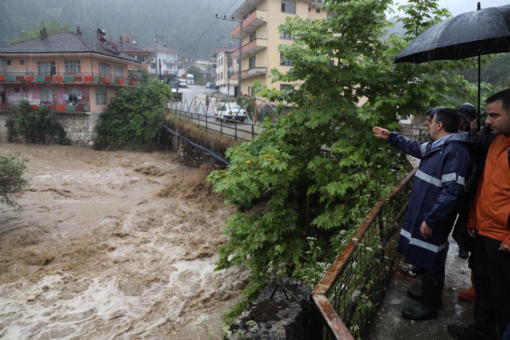 Düzce Valisi Cevdet Atay, Yığılca Kaymakamı Talha Altuntaş ve kurum amirleri ile birlikte, İlimizde etkili olan yoğun yağışlar sonrası su taşkını yaşanan Yığılca ilçesinde incelemelerde bulundu.