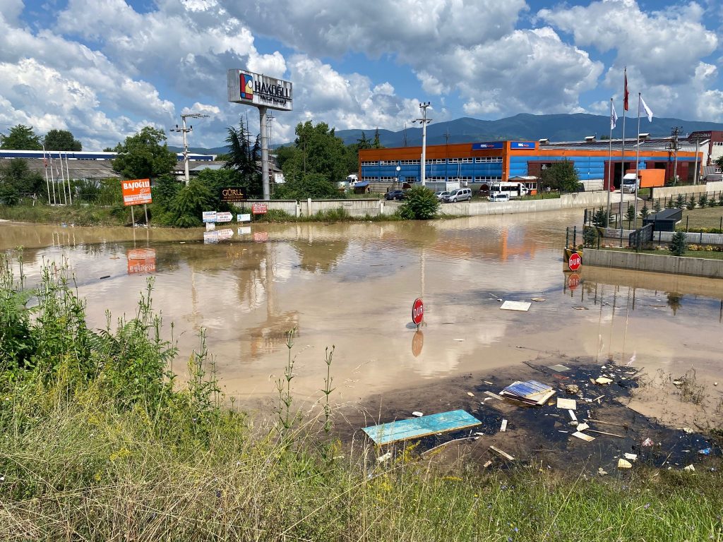 Melen Çayı’nın taşması ile Küçük Sanayi Sitesi, Oto Galericiler Sitesi, Melensu Park ve D-100 Alt Geçidi sularla kaplandı. Yolun trafiğe kapatıldığı bölgede ulaşımın yeniden başlaması için suyun tahliye edilmesi bekleniyor.