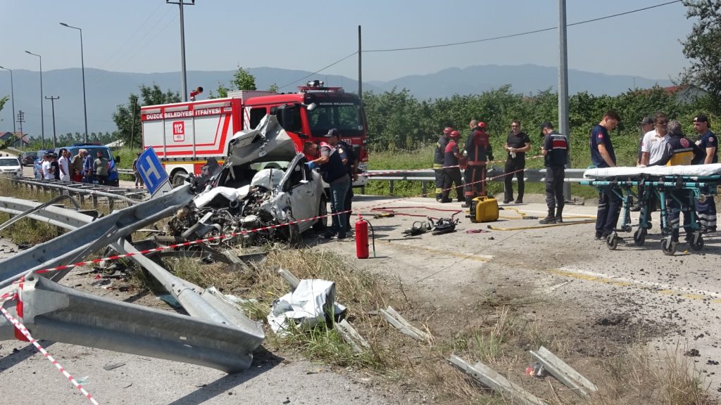 Kaza 10.30 sıralarında Kuzey Çevre Yolu Muncurlu Sapağı mevkisinde meydana geldi. Alınan bilgilere göre Kaynaşlı istikametine gitmekte olan Onur Turan(30) idaresindeki 81 ACL 956 plakalı otomobil sürücüsünün direksiyon hakimiyetini kaybetmesi sonucu kontrolden çıkarak yol ayrımında bulunan çelik bariyerlere çarptı.