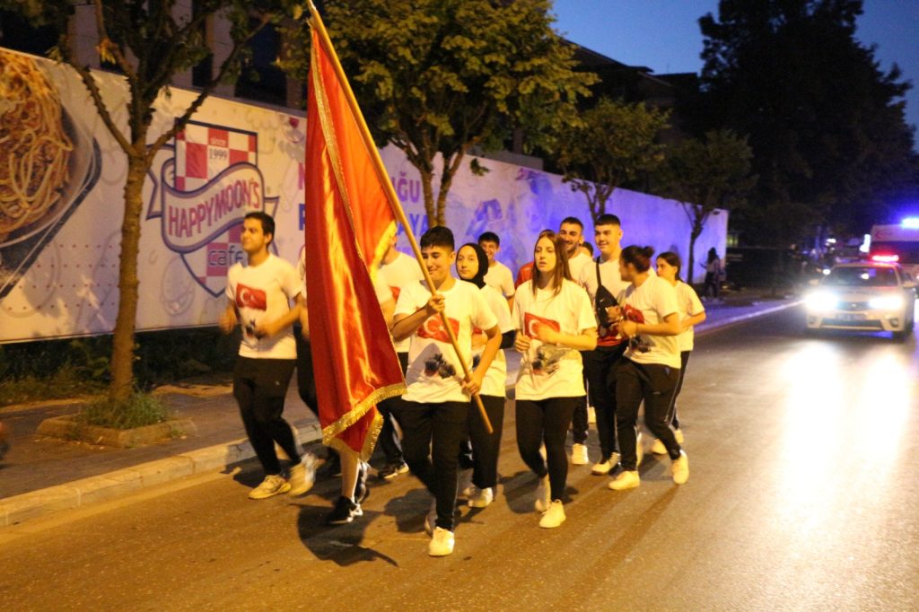 Düzce’de 15 Temmuz Demokrasi ve Milli Birlik Günü etkinlikleri kapsamında “Demokrasi bilinci, elden ele taşınan bir bayrak yarışıdır” sloganıyla 15 Temmuz şehitleri sancak koşusu düzenlendi.