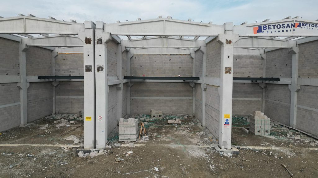 Toplam 385 dükkanın yer alacağı projenin 102 dükkandan oluşan ilk etabında parseller üzerinde bulunan dükkanların prekast sistem montajları tamamlanırken, belirli parsellerde ise kalan çelik ve duvar imalatları ile asma kat kiriş montajları sürdürülüyor.