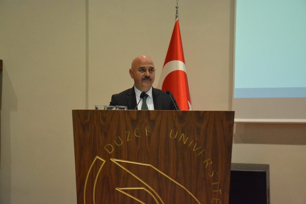 Prof. Dr. Ufuk Koca Çalışkan’ın açılış konuşmasından sonra kürsüye davet edilen Eczacı Odası Düzce İl Temsilcisi Eczacı Yalçın Bakır ise; Düzce Üniversitesi Eczacılık Fakültesi’nin açılmasını mutlulukla karşıladığını söyleyerek, daha yeni bir fakülte olmasına rağmen başarılarını duymanın gurur verici olduğunu ifade etti. Eczacılık Fakültesi öğrencilerini tebrik eden Bakır, kendilerine başarılı bir eğitim hayatı dileğinde bulundu.