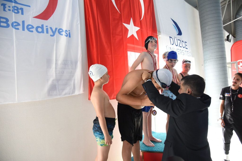 Düzce Belediyesi ve Düzce Üniversitesi işbirliği ile Cumhuriyet’imizin 100. Yılı dolayısıyla düzenlenen “Düzce Belediyesi 100. Yıl Yüzme Şenliği” yoğun katılım ile gerçekleşti. Düzce Üniversitesi Yüzme Havuzu’nda düzenlenen müsabakada 180 sporcu farklı kategorilerde yarıştı.