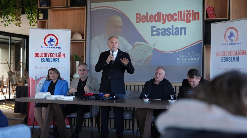 Düzce Belediye Başkanı Dr. Faruk Özlü, ‘Belediyeciliğin Esasları’ kitabının tanıtımında yaptığı konuşmada “Bu çalışma bir yorum, bir gözlem ya da bir deneme çalışması değildir, her başlık altında bilimsel verilerle desteklenmiş, sorunu ve çözümü bir arada işleyen bir tez çalışması niteliğindedir” dedi.