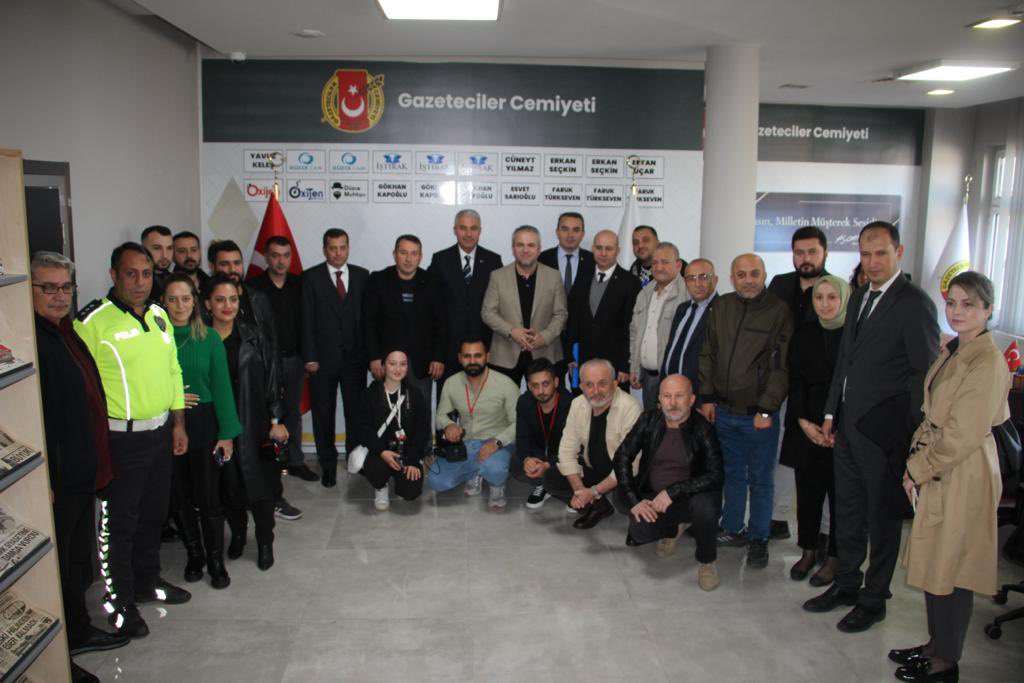 Şehre geldiği günden beri başarılı operasyonlara imza atan ve aranan şahıslardan uyuşturucu ile mücadeleye kadar Başsavcı Yasin Emre ile koordineli şekilde şehrin huzuru ve güvenliğini sağlama noktasına canla başla çalışan Emniyet Müdürü İbrahim Ergüder, Gazeteciler Cemiyeti’ni ziyaret etti.