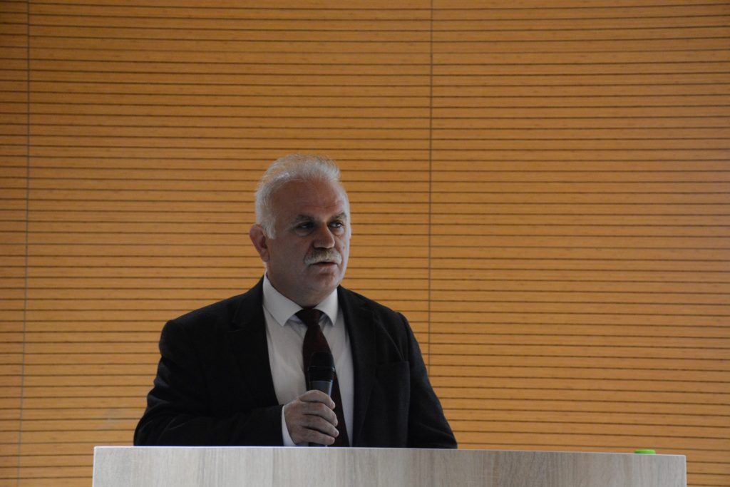 Konferansın açılış konuşmasını yapmak için kürsüye davet edilen Sağlık Bilimleri Fakültesi Dekanı Prof. Dr. Şerif Demir, diyabet hastalığının önemine vurgu yaparak, her 10 kişiden birinin diyabet olduğunu söyledi.  1920’li yıllarda, insülinin önemi anlaşıncaya kadar, hastaların dramatik olarak ölümü beklediğini ifade eden Prof. Dr. Demir, insülinin bulunmasıyla birlikte ölümlerin önüne geçildiğini dile getirdi. Son zamanlarda diyabet oranında ciddi bir artış olduğuna vurgu yapan Demir, kişilerin risklerini bilerek, ona göre yaşamlarını sürdürmesi gerektiğinin altını çizdi. Diyabet hastalarının %90’nın tip2 olduğunu, bunun da beslenme koşulları, yaşam şartlarına bağlı olarak meydana gelen sorunlar olduğunu söyleyen Prof. Dr. Şerif Demir, bu durumun bilinçlenmekle ve bazı şeyleri değiştirmekle düzelebileceğini gösterdiğini vurguladı. Konferans için üniversitenin davetini geri çevirmeyen Dr. Mustafa Çalışkan’a teşekkür eden Demir, konferansın yararlı olması temennisi ile konuşmasını sonlandırdı.