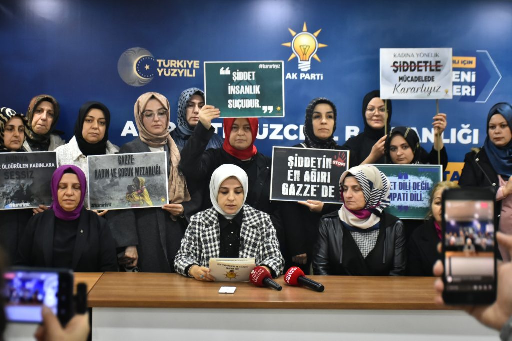Kadına Yönelik Şiddete Karşı Uluslararası Mücadele Günü vesilesiyle şiddetin sadece ev, sokak ve işyerleri ile sınırlı olmadığını vurgulayan Yılmaz, “çatışmalarda zorla silahlandırma, çatışmaya zorlama, tecavüz ve intihar görünümlü infazlar da kadına yönelik şiddetin en ağır biçimidir. YPG-PKK gibi terör örgütlerinin uluslararası raporlara giren kadınlara ve kız çocuklarına yönelik şiddetini, infazını bir kez daha kınıyoruz. AK Parti Kadın Kolları olarak kadına yönelik her türlü şiddeti reddediyoruz. Tek bir kadının dahi şiddet görmesine tahammülümüz yok. Ev içinde, çatışmalarda, terör faaliyetlerinde ve her türlü zeminde şiddet uygulayana, şiddete taraf olana, şiddet üzerinden siyaset yapana, şiddeti araçsallaştıran, olumlayan zihniyete karşı kadın erkek omuz omuza mücadelemizi kararlılıkla sürdüreceğiz” şeklinde konuştu.