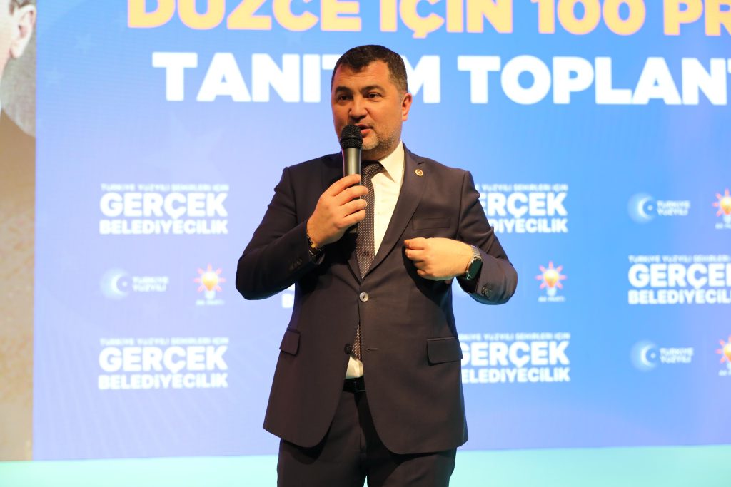 Düzce’miz için daha yapacak çok işimiz, hayata geçireceğimiz birçok projemiz var. Bizim, şehrimiz ve bu şehirdeki herkese sonsuz sevgimiz, saygımız ve muhabbetimiz var. Düzce’miz üzerine kurduğumuz büyük hayallerimiz var. Şimdi sizlerden, 31 Mart yerel seçimlerinde 5 yıl daha yetki istiyorum. Bu yetkiyi kendim için değil, Düzce’nin yarınları ve tamamlanması gereken büyük eserler, büyük projeler için istiyorum. Sizlere, geçtiğimiz 5 yıl boyunca olduğu gibi daha çok çalışmanın ve belediyemizin tüm imkanlarını Düzce’miz için seferber etmenin sözünü veriyorum.”