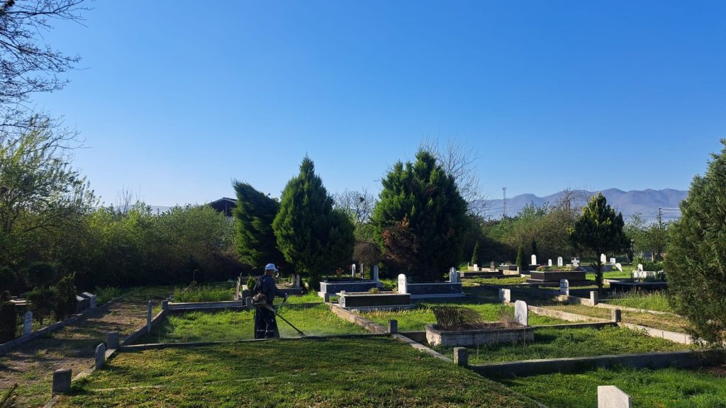 Müdürlüklere bağlı ekipler, çalışmalar kapsamında mezarlıkların içerisindeki yabani otların temizlenmesinin yanı sıra yürüyüş yolları, ağaçların bakımı, tırpan ve temizlik çalışmasının yanı sıra bakım, onarım ve boyama işlemleri ile yıkama işlemlerini de gerçekleştirdi.