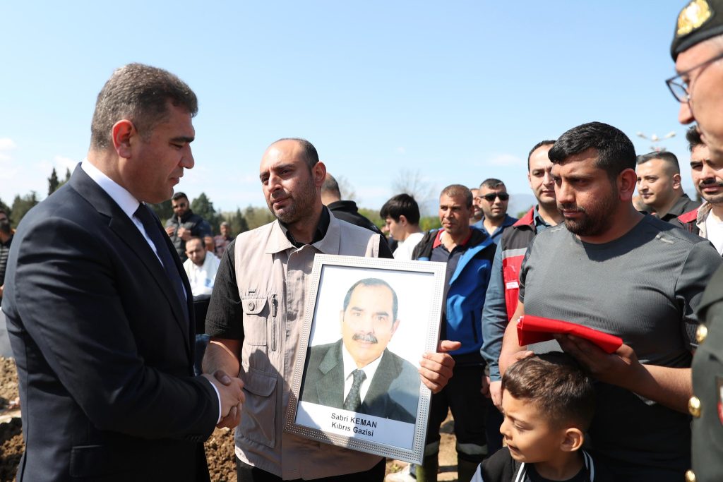 Vali Selçuk Aslan, “Kronik rahatsızlıkları sonucunda vefat eden Kıbrıs Gazimiz Sabri Keman’ın cenaze namazına ve defin törenine katılarak, gazimize karşı son vazifemizi yerine getirdik. Merhuma Allah’tan rahmet, yakınlarına sağlık ve sabır dolu taziyelerimi sunuyorum” dedi.