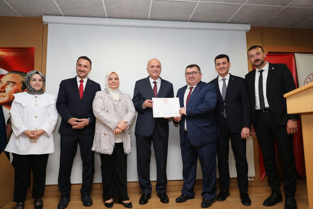 Merkez İlçe Seçim Kurulu Hakimi Murat Kurt, tebrik ederek Dr. Faruk Özlü’ye mazbatasını teslim etti. Teşekkür eden Özlü de Hakim Kurt’a ve seçim kurulu yetkililerine çiçek takdim etti.