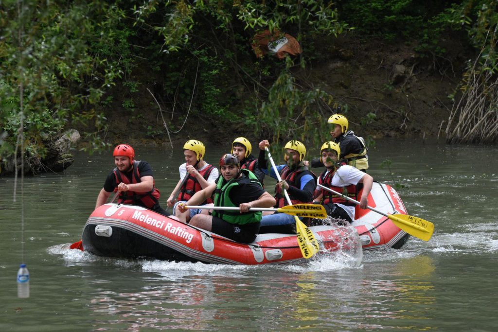 Düzce Belediyesi Gençlik ve Spor Hizmetleri Müdürlüğü’nün organizasyonu ile Düzce Belediyesi personeli için rafting etkinliği düzenlendi. 1 Mayıs Emek ve Dayanışma Günü dolayısıyla düzenlenen etkinlikte 100 saha personeli Melen’in coşkun sularında kürek çekerek stres attı.