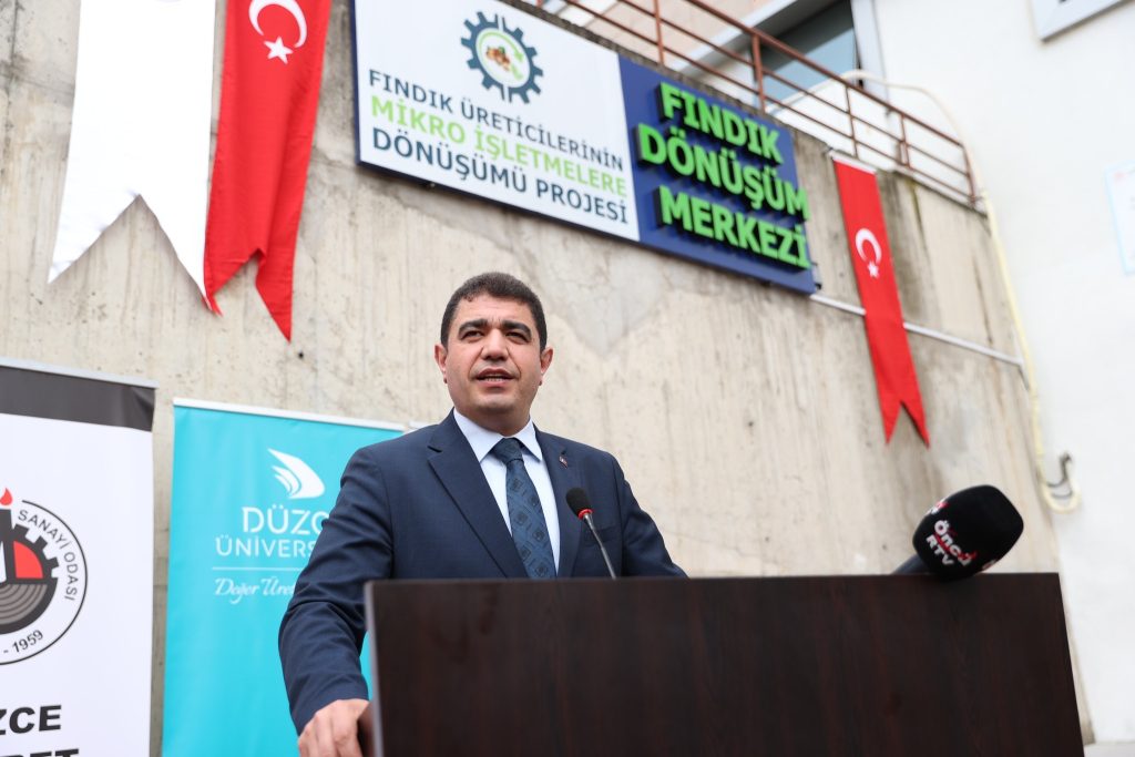 Programın açılış konuşmasını gerçekleştiren Düzce Ticaret ve Sanayi Odası Yönetim Kurulu Başkanı Erdoğan Bıyık, proje bütçesinin yaklaşık 2 milyon 400 bin TL olduğunu belirterek bütçenin yüzde 75’inin MARKA tarafından sunulan hibe desteği olduğunu söyledi. Düzce TSO, Düzce Üniversitesi ile Düzce İl Tarım ve Orman Müdürlüğü iş birliğinin, kamu-üniversite-sanayi iş birliğinin en güzel örneklerinden biri olduğuna işaret eden Erdoğan Bıyık, proje kapsamında 50 üreticiye farklı alanlarda eğitim verileceğini, Fındık Dönüşüm Merkezi’nde; fındık kırma, ayıklama, kavurma, ambalajlama ve fındık ezmesi gibi işlemler sonucunda fındığın katma değerli ürüne dönüşeceğini vurguladı.