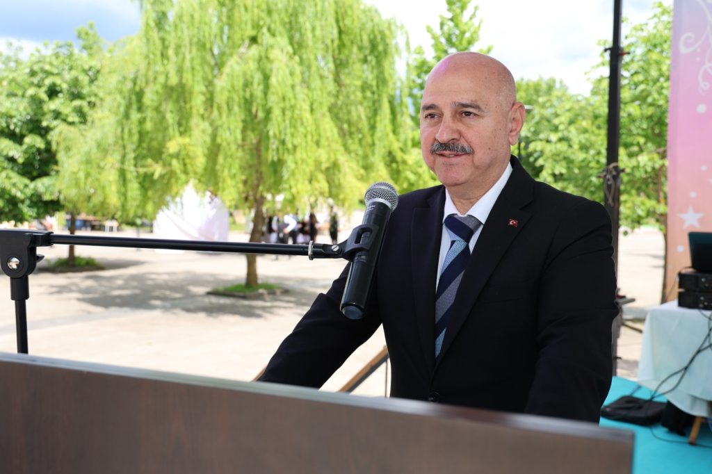 Konuşmasını yapmak üzere kürsüye davet edilen Düzce Valisi Selçuk Aslan, Düzce Üniversitesi’nin yeniden hayata geçirdiği DÜFEST 2024’ün hayırlı olmasını temenni etti. Dünyada ve ülkemizde yaşanan olağanüstü durumlar nedeniyle uzaktan eğitim modelinin geliştirildiğini ve sosyalleşmede geri kalındığını söyleyen Düzce Valisi Selçuk Aslan, DÜFEST’in; yeni bir başlangıç olması, kültürel iklimin gelişmesi ve sahiplenme duygularını artırması açısından önemli bir etkinlik olduğunu sözlerine ekledi. Bilim, kültür ve sanatın içe içe olduğu bu organizasyonda, şehrin sanayi kuruluşlarının, sivil toplum kuruluşlarının ve kamu kurumlarının da stantları olduğunu ifade eden Selçuk Aslan, 5 gün süresince Düzce Üniversitesi öğrencilerinin güzel hatıralar biriktireceğini ve faydalı fırsatlar elde edeceğini dile getirdi.