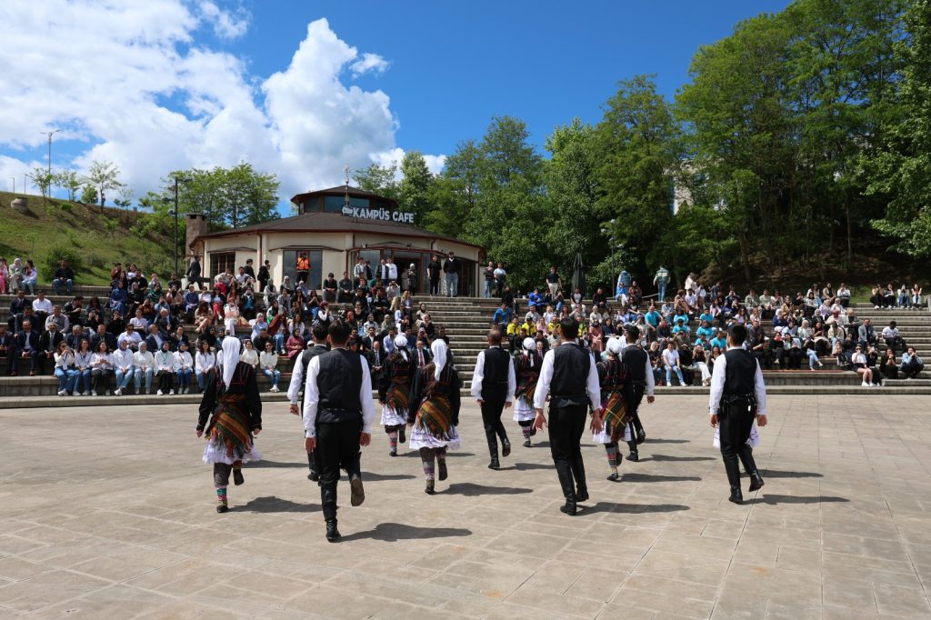 Düzce Valisi Selçuk Aslan, Düzce Üniversitesi Rektörü Prof. Dr. Nedim Sözbir ve protokol üyeleri tarafından DÜFest 2024 açılış kurdelesinin kesilmesiyle devam eden programda, Kültür Sanat ve Dans Topluluğu öğrencileri de halk oyunları gösterisi gerçekleştirdi.