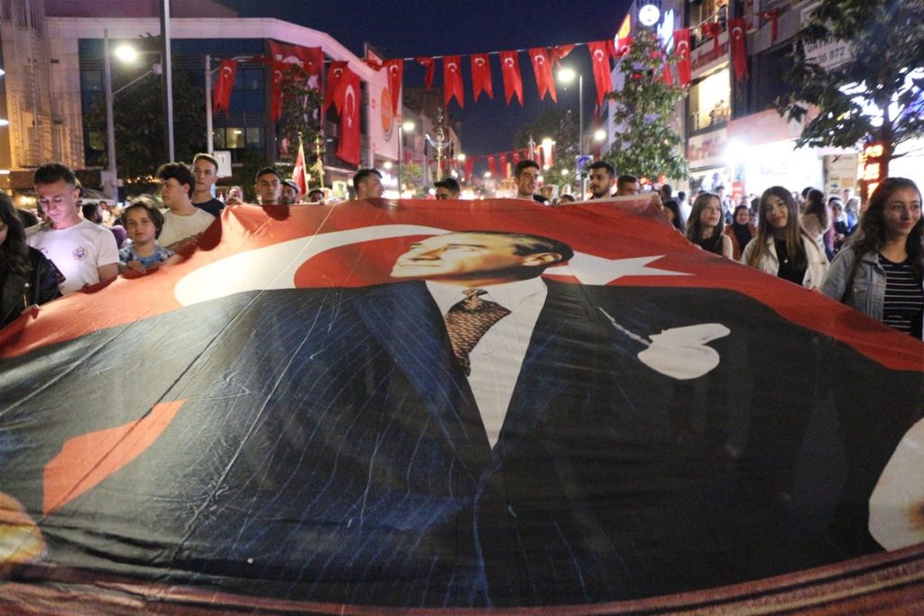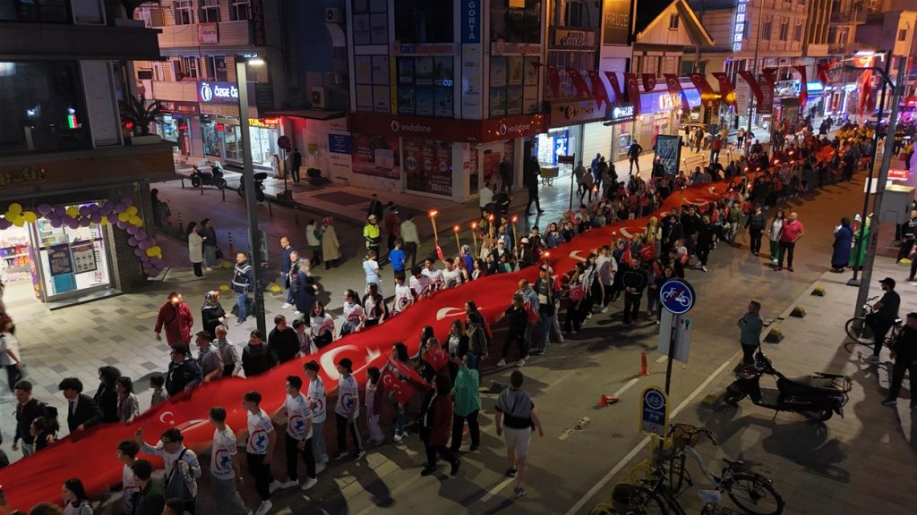 Gençlik ve Spor İl Müdürlüğünün düzenlediği, Düzce Belediyesi önünden başlayan ve yaklaşık bin kişinin katıldığı fener alayında vatandaşlar, gençler ve sporcular ellerinde taşıdıkları meşalelerle Düzce Belediyesi Mehteran Takımına eşlik ederek Anıtpark Meydanı’na kadar yürüdü.