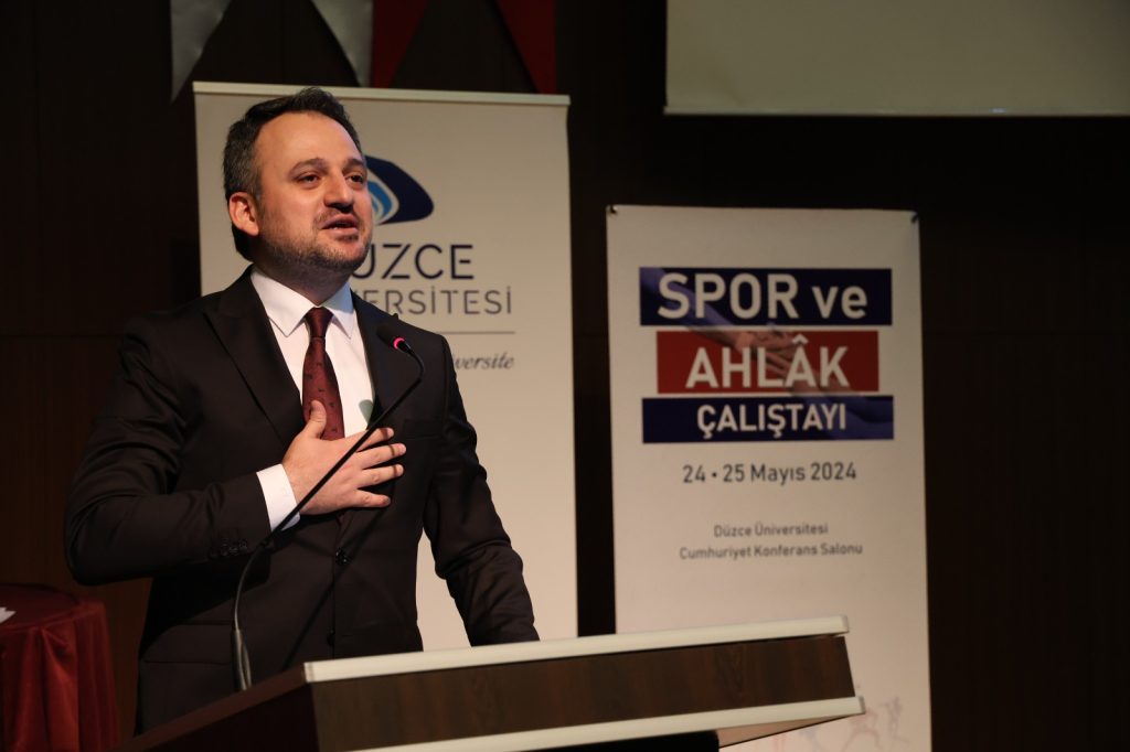 Düzce Valisi Selçuk Aslan, Sporda ahlakın güçlü bir şekilde tartışılması gerektiğine vurgu yaptığı konuşmasında sporun toplumu birleştirici bir unsur olduğunu da dile getirdi. “Çalıştayın, hayırlara vesile olmasını temenni ederken, Düzce Üniversites’ne ev sahipliği için teşekkürlerimi sunarım.” sözleri ile konuşmasını tamamladı.